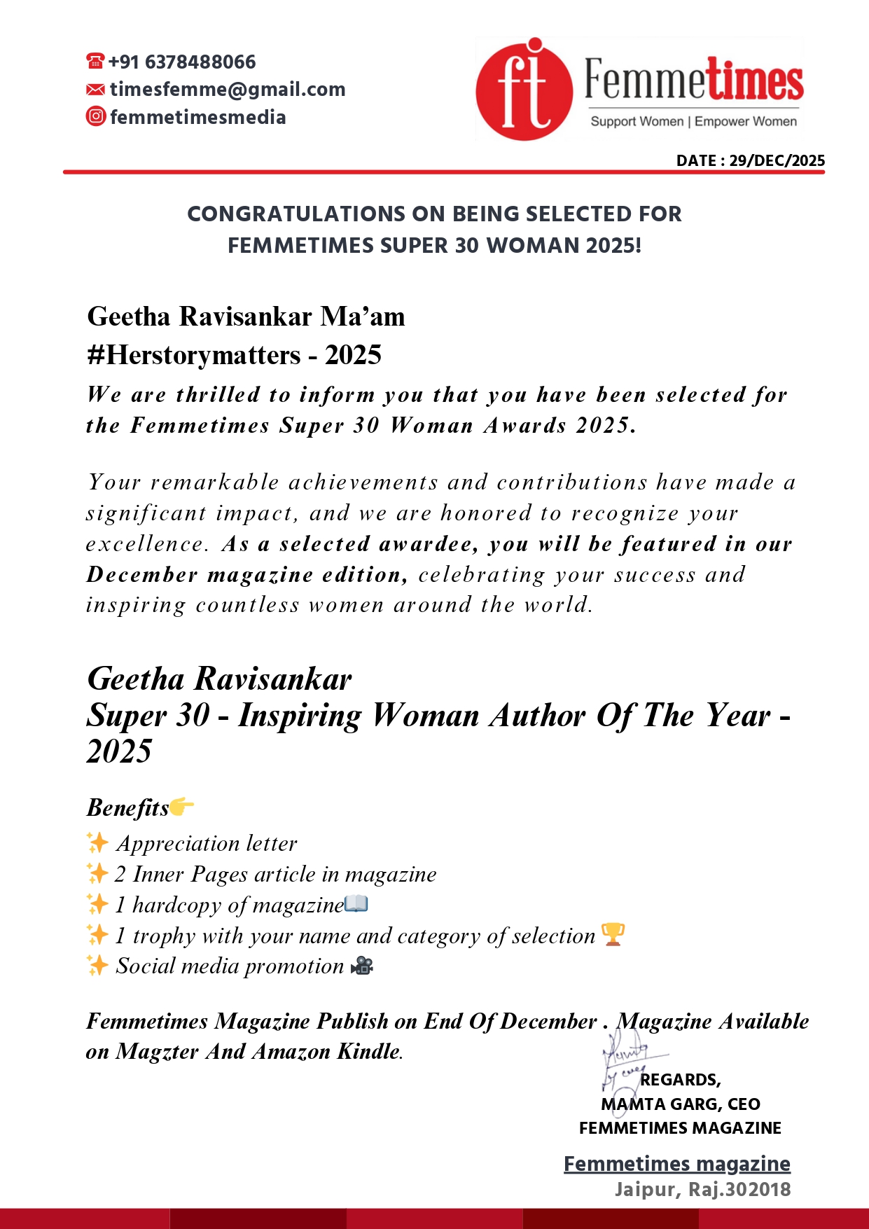 GG Academy, founded by Geetha Ravisankar, initially began as an offline center providing personalized mentoring and tutoring services to a single student. Over time, it expanded its offerings to include a daycare and kindergarten program in 2018. Now GG ACADEMY is aspiring to be a Private Limited company. Today, the academy offers a wide range of services including academic mentoring to school students from across the globe, life skills and leadership skill training and mentoring to all sections of society, and training programs for corporates and industries in India.